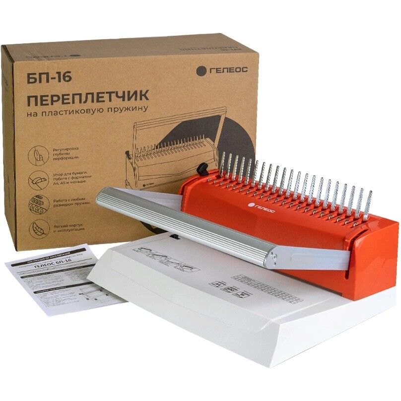 Переплетчик Гелеос БП16ПБК A4/перф.16л.сшив/макс.500л./пластик.пруж. (6-51мм)