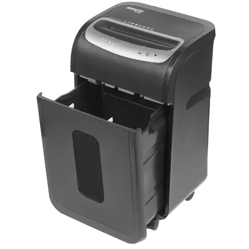 Особенность устройства в том, что за один проход можно уничтожить до 25 листов. Кроме бумаги, уничтожитель справится с дисками, пластиковыми картами, скрепками и скобами, что делает его универсальным.