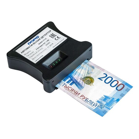 DORS CT18 определяет подлинность российских рублей путем детекции антистокс-меток. Для проверки банкноты её необходимо вставить в щель детектора лицевой стороной (с нанесенными серийными номерами). Если банкнота имеет антистокс-метки (не является подозрительной)раздается звуковой сигнал и на корпус.