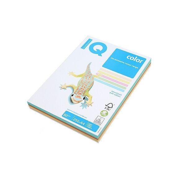 Бумага цветная IQ color, А4, 80 г/м2, 250 л., (5 цветов x 50 листов), микс пастель, RB01