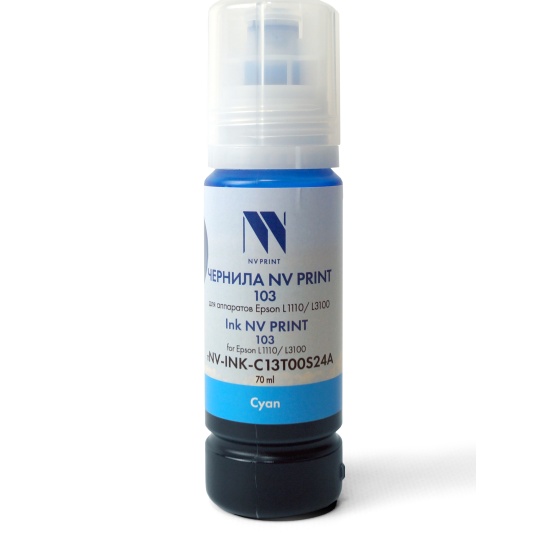 Чернила NV PRINT 103 NV-INK-C13T00S24A Cyan для Epson L1110, L3100, L3101, L3110, L3150, L3151, L3156, L3160, L5190 (70 мл) совместимые