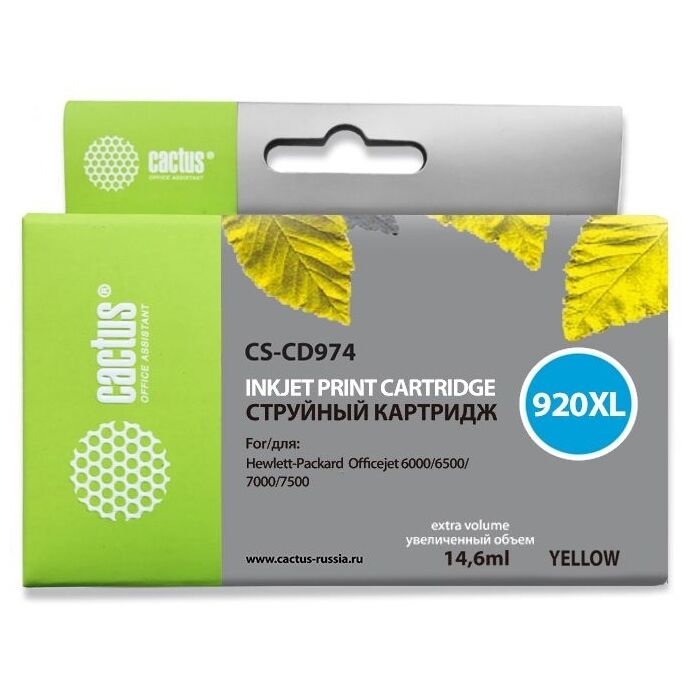 Картридж струйный Cactus CS-CD974 желтый для №920XL HP Officejet 6000/6500/7000/7500 (14,6ml)
