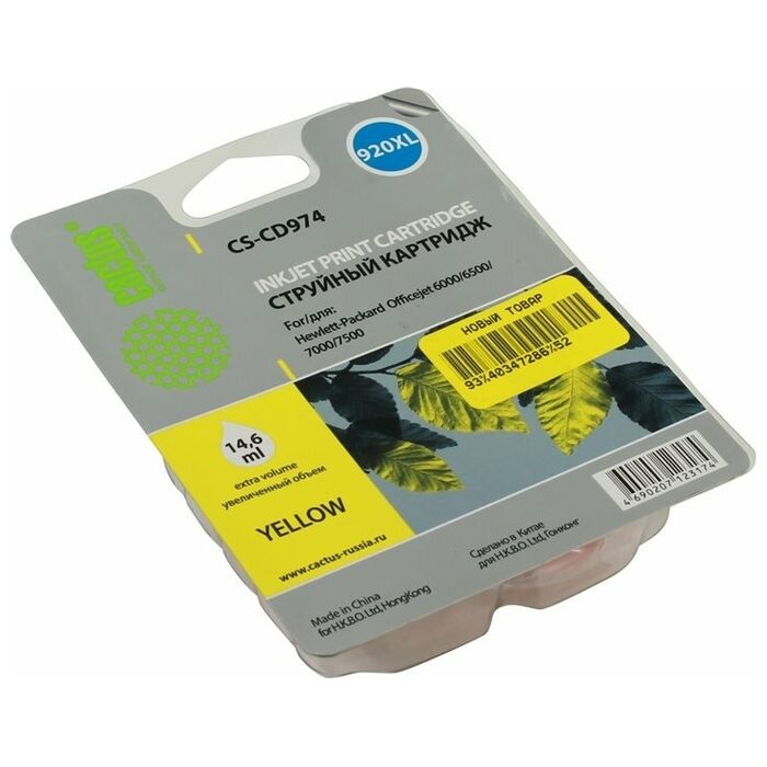 Картридж струйный Cactus CS-CD974 желтый для №920XL HP Officejet 6000/6500/7000/7500 (14,6ml)