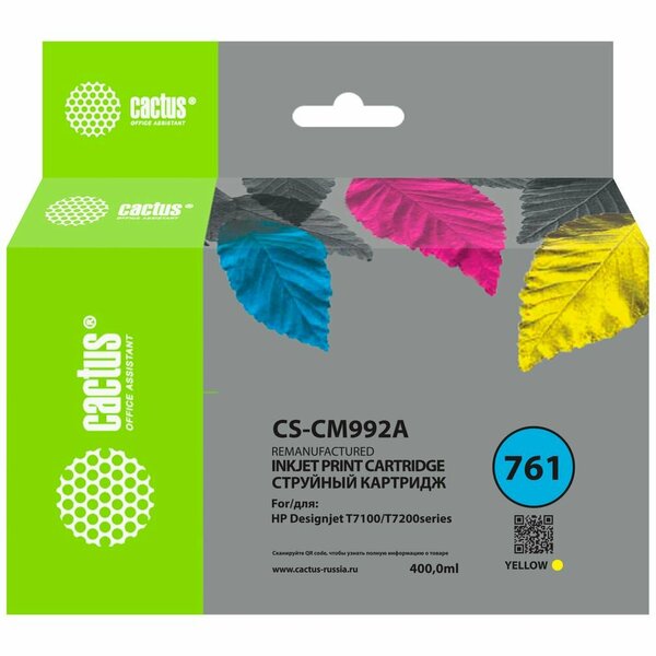 Картридж струйный Cactus CS-CM992A №761 желтый 400мл для HP HP DesignJet T7100/Т7200