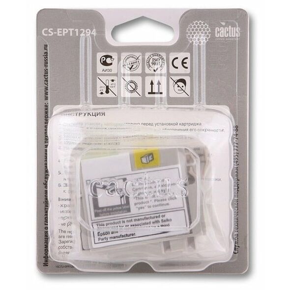 Картридж струйный Cactus CS-EPT1294 желтый для Epson Stylus Office B42/BX305/BX305F (10ml)