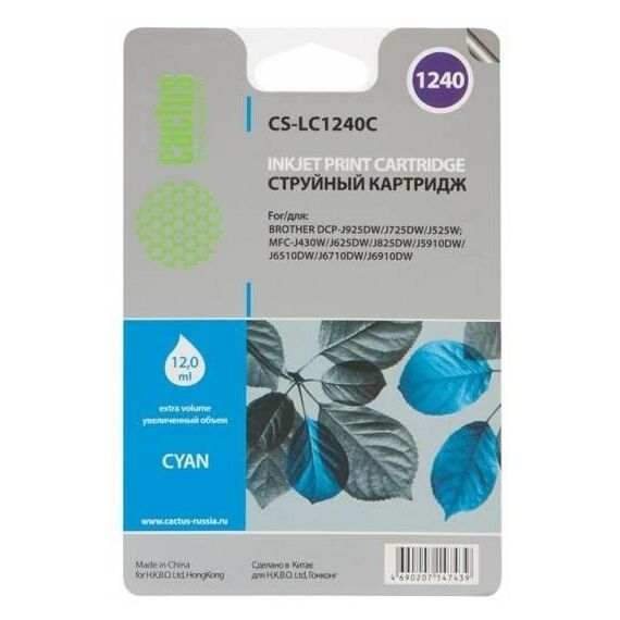 Картридж струйный Cactus CS-LC1240C голубой для Brother MFC-J6510/6910DW (12ml)