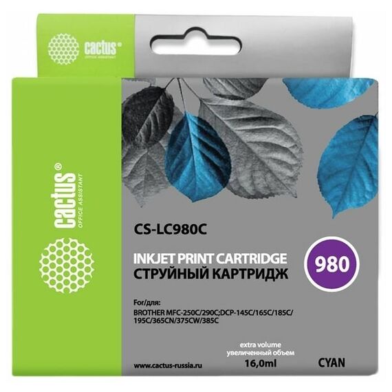 Картридж струйный Cactus CS-LC980C голубой для Brother DCP-145C/165C MFC-250C/290C (16ml)