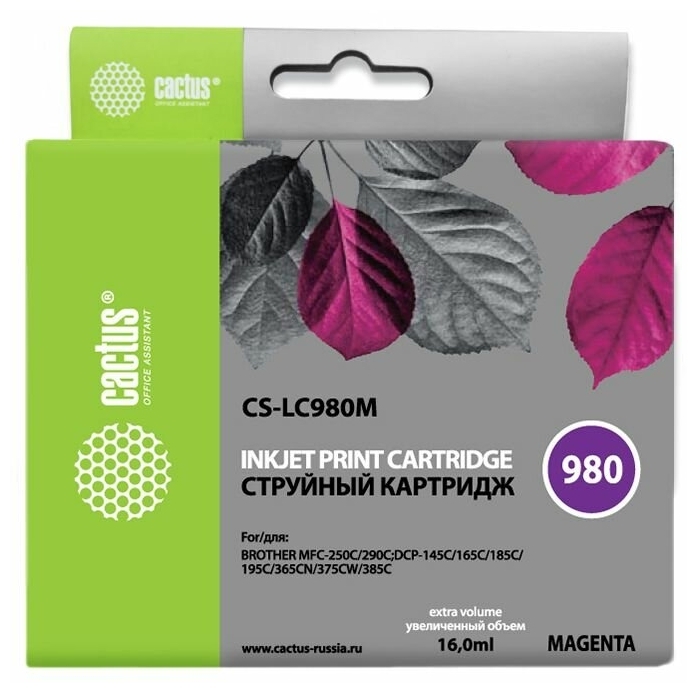 Картридж струйный Cactus CS-LC980M пурпурный для Brother DCP-145C/165C MFC-250C/290C (16ml)