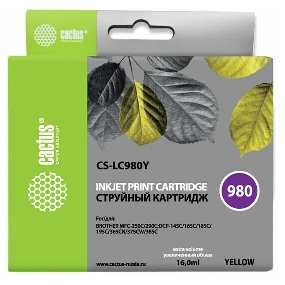 Картридж струйный Cactus CS-LC980Y желтый для Brother DCP-145C/165C MFC-250C/290C (16ml)