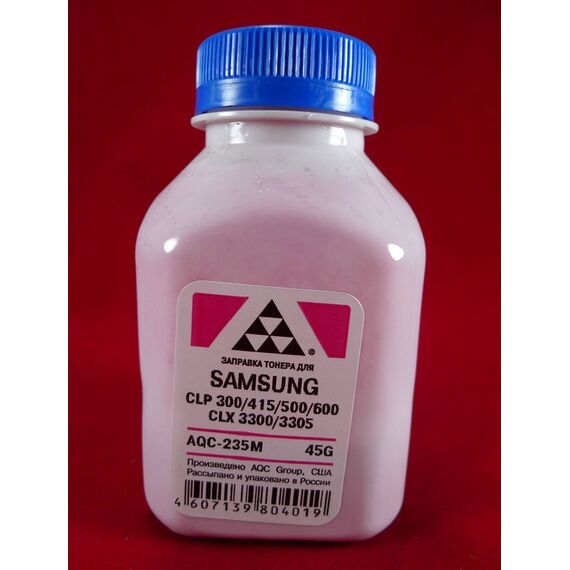 Тонер AQC AQC-235M бутыль 45 г, пурпурный, совместимый для Samsung CLP-300/315/320/325/360/415/500/510/600/610/660, CLX-3300/3305