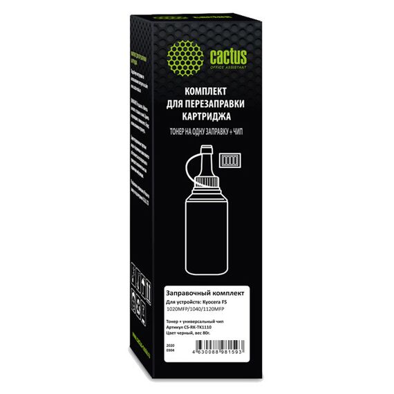 Тонер Cactus CS-RK-TK1110 черный флакон 80гр в компл чип для принтера Kyocera FS-1020/1040/1120