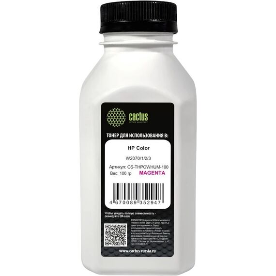 Тонер Cactus CS-THPCWHUM-100 пурпурный флакон 100гр для принтера HP Color W2070/1/2/3