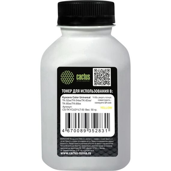 Тонер Cactus CS-TKYCU2Y-LT-50 желтый флакон 50гр для принтера Kyocera Color Universal TK-52xx/TK-54xx/TK-83xx/TK-85xx/TK-88xx