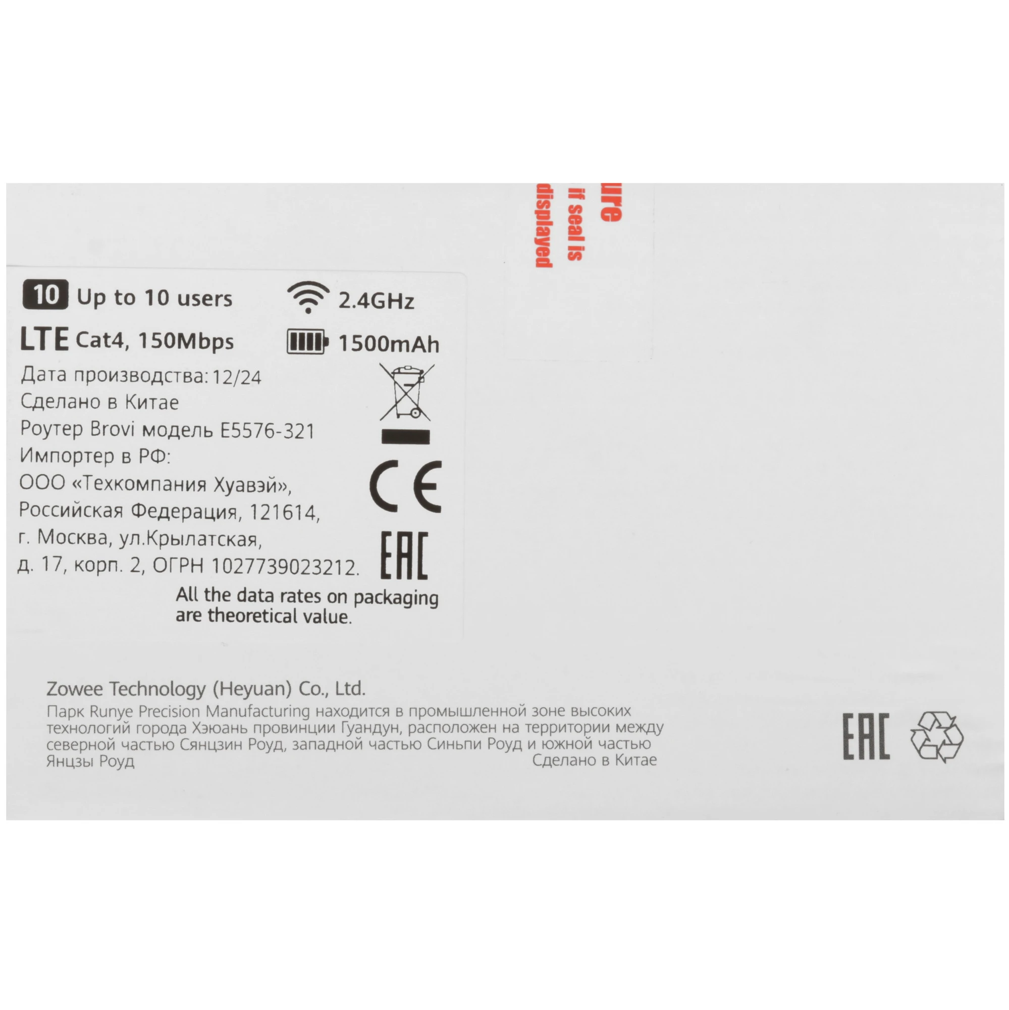 Модем 4G Huawei Mobile 3s E5576-321 51071VPL Wi-Fi Firewall внешний белый