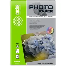 Основные Производитель Cactus Код производителя CS-MA418050 Тип фотобумага Формат A4 (210x297 мм) Плотность 180 г/м2 Количество листов 50 шт. Дополнительно Покрытие матовое Цвет белый