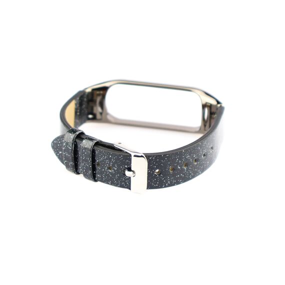 Ремешок кожа/рисунок Xiaomi для Mi Band 4 чёрный блестки (6)