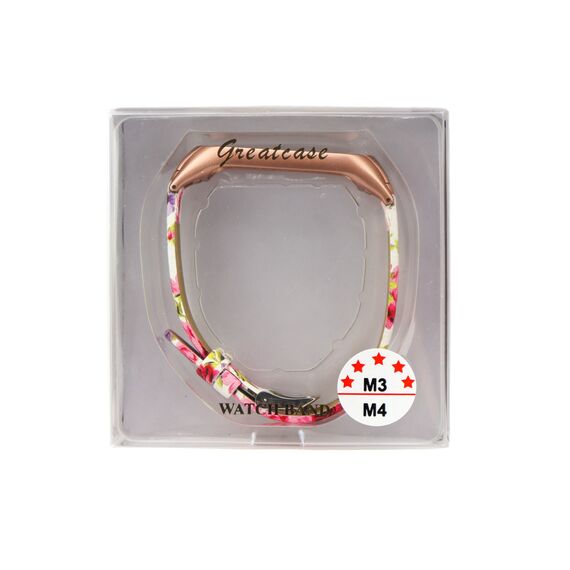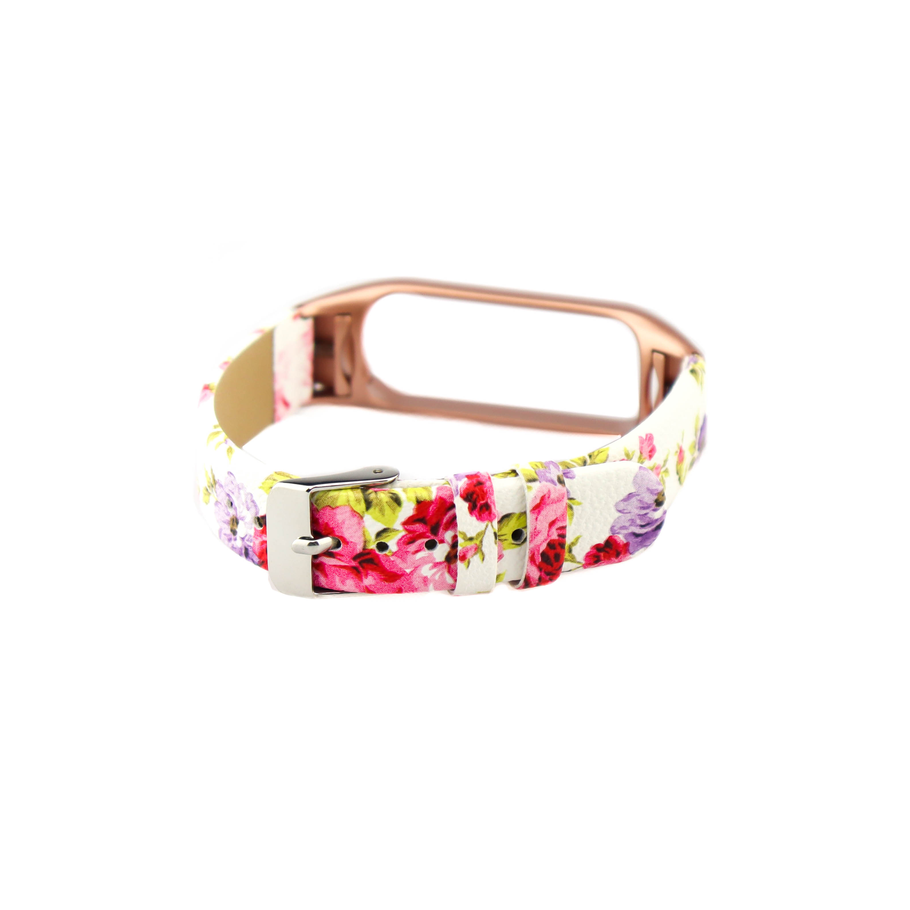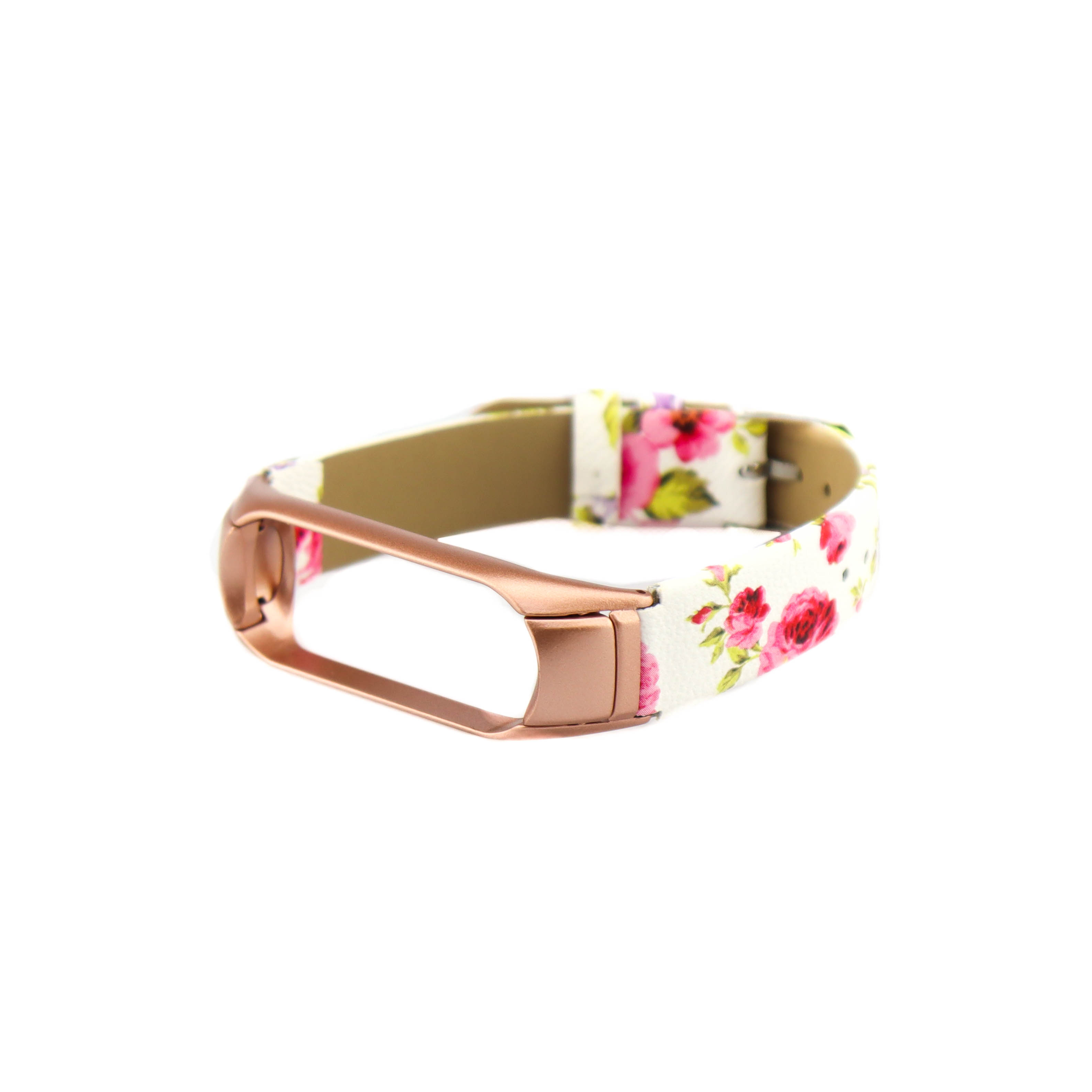 Ремешок кожа/рисунок Xiaomi для Mi Band 4 цветы розовый (2)