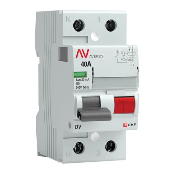 Устройство защитного отключения DV 2P 40А/ 30мА (AC) EKF AVERES rccb-2-40-30-ac-av предназначено для защиты человека от поражения электрическим током при прикосновении к открытой проводке или к электрооборудованию, оказавшемуся под напряжением, и для предотвращения возгорания, возникающего вследствие длительного протекания токов утечки и развивающихся из них токов короткого замыкания. Для защиты от токов перегрузки и короткого замыкания необходимо использовать выключатели дифференциального тока совместно с автоматическими выключателями.