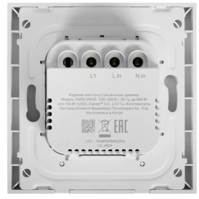 Диммер работает только с лампочками, оснащенными встроенной системой регулировки яркости. Он устанавливается в стандартный круглый подрозетник и подключается только с нейтралью — в комплекте есть всё необходимое.