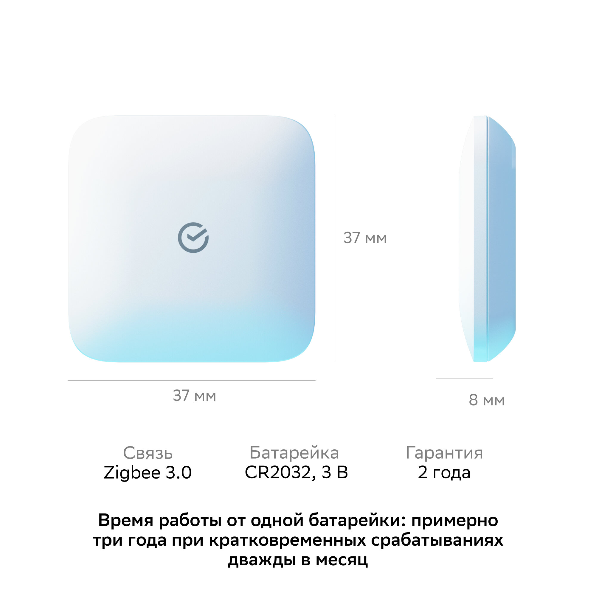 Умный датчик протечки Sber, батарейка в датчике, руководство пользователя
