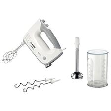 Брэнд BOSCH Модель MFQ3540 Тип ручной Мощность 450 Вт Количество скоростей 5 Импульсный режим есть Венчик для взбивания есть Крюки для теста есть Насадка блендер есть Цвет белый