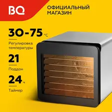 Сушилка для овощей и фруктов BQ FD1003 Мощность: 420 Вт Регулировка температуры: 35-70 °С Размер поддона: 320 х 270 мм Количество поддонов: 5 Вес: 2.27 кг