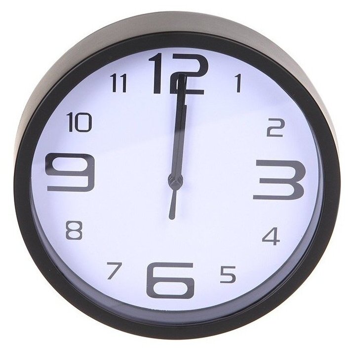 Настенные часы Perfeo PF-WC-001, PF_C3058 круглые д. 20см, чёрный корпус/белый циферблат