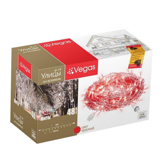 Гирлянда VEGAS 55003 Нить 48 красных LED ламп 5м