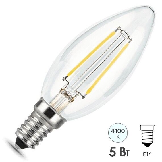 Технические характеристики Gauss LED Filament Свеча dimmable E14 5W 450lm 4100К 103801205-D