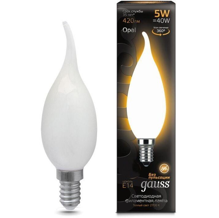 Технические характеристики Gauss LED Filament Свеча на ветру OPAL E14 5W 420lm 2700К 104201105