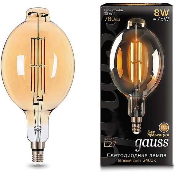 Технические характеристики Gauss Vintage Filament BT180 8W E27 180х360mm Golden 780lm 2400K 151802008