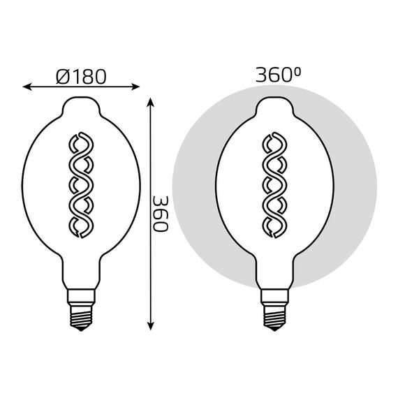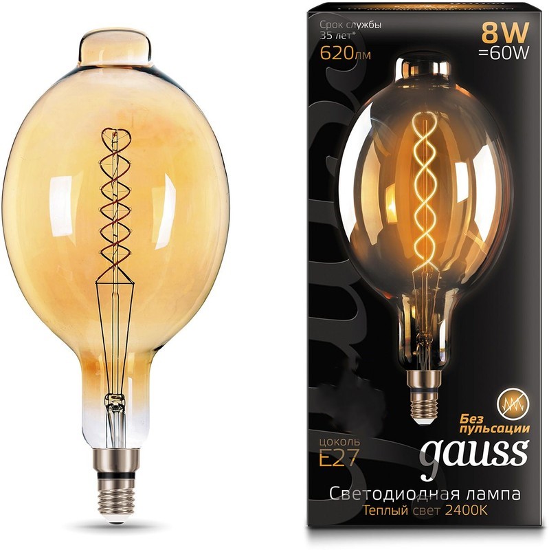 Технические характеристики Gauss Vintage Filament Flexible LED BT180 8W E27 180х360mm Golden 620lm 2400K 152802008