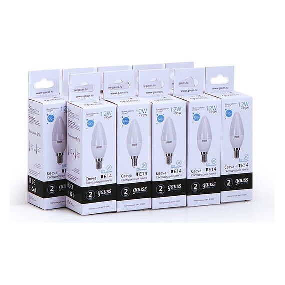 Лампа GAUSS E14 33122 свеча 12Вт упаковка 10 шт.