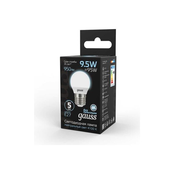 Технические характеристики Gauss LED Шар E27 9.5W 950lm 4100K 105102210