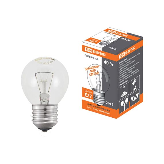 Лампа накаливания TDM ELECTRIC Шар прозрачный (SQ0332-0002) 40 Вт-230 В-Е27
