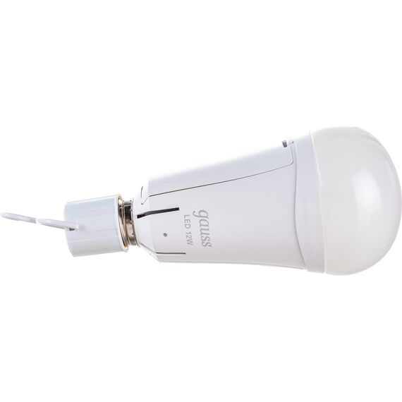 1.Аварийная лампа Gauss A80 12W 900lm 3000K Е27 с Li-Ion аккумулятором LED 1/5/50 102002112 продолжает работать при отключении электропитания.