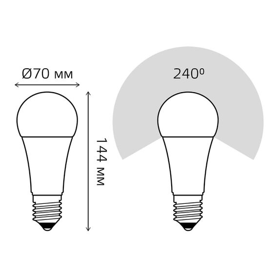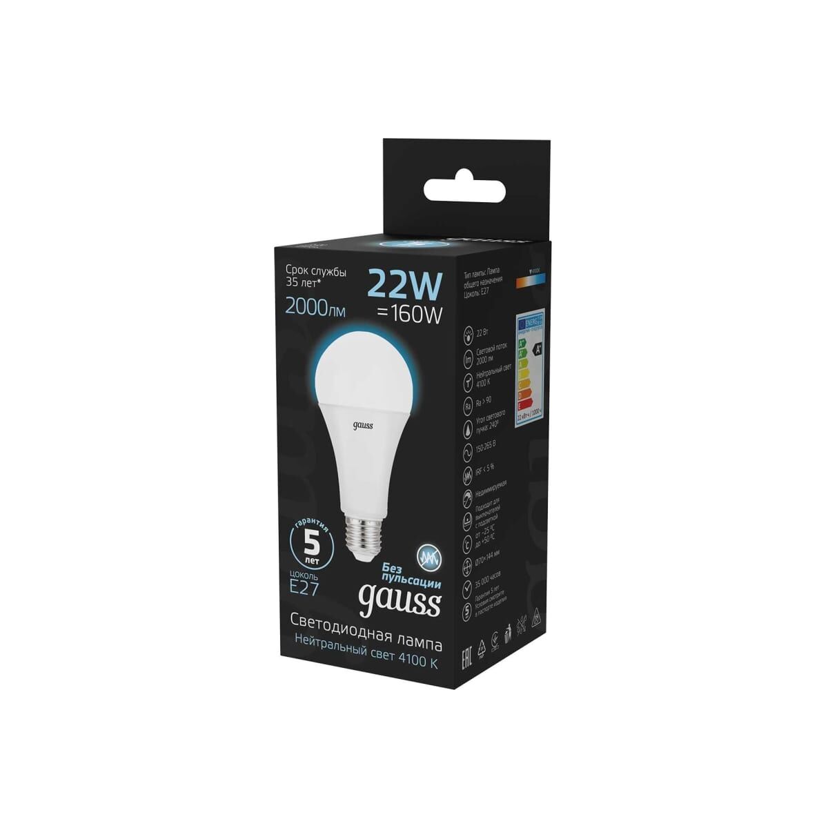 Технические характеристики Gauss LED A70 22W E27 1640lm 4100K 102502222
