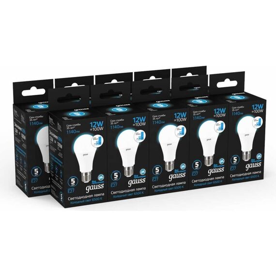 Лампа светодиодная Gauss 102502312-S 12Вт E27 груша 220B 6500K св.свечения белый холодный уп/10шт