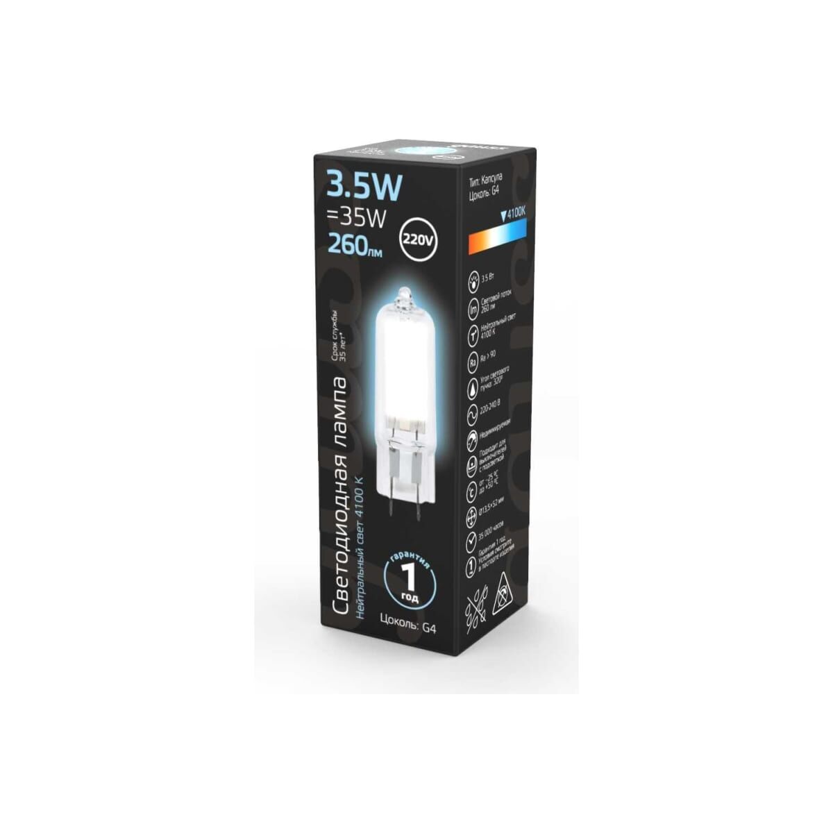 Лампа светодиодная Gauss 107807203 G4 3.5Вт G4 капсула 220B 4100K св.свечения белый нейтральный уп/1шт