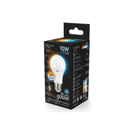 Лампа Gauss LED A60 10W E27 930lm 2700K/4100K 102502110-T - надежный источник освещения высокого качества.