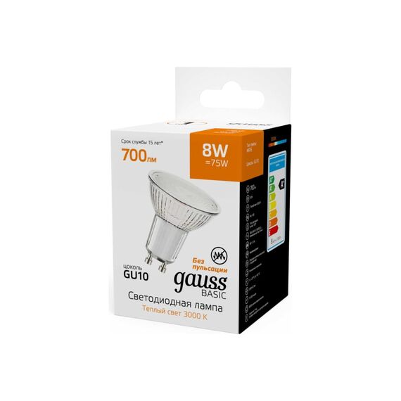 Лампа светодиодная Gauss Basic 10106182 8Вт цок.GU10 софит св.свечения теплый св/дневной