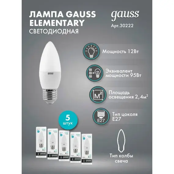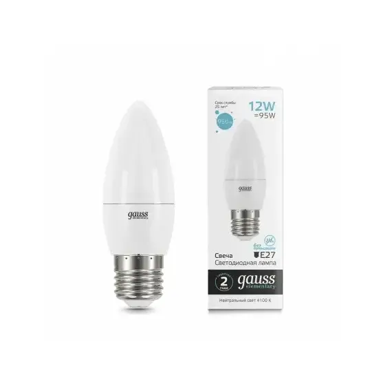 Лампа светодиодная Gauss Elementary 30222 12Вт E27 свеча 220B 4100K св.свечения белый нейтральный уп/10шт