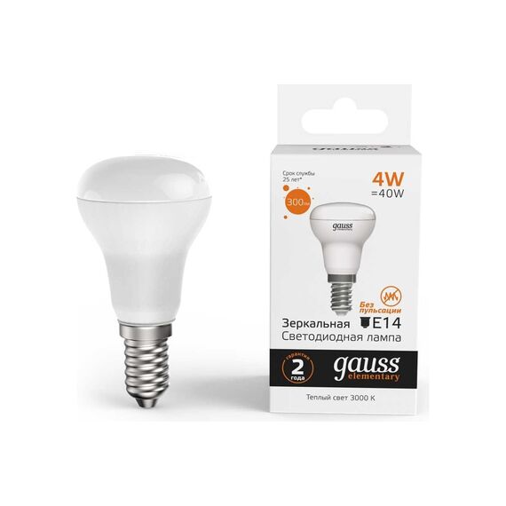 Лампа светодиодная Gauss Elementary 63114 4Вт E14 рефлек. 220B 3000K св.свечения белый теплый уп/10шт