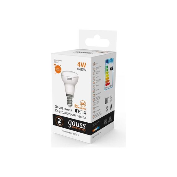Технические характеристики Gauss Elementary R39 4W 300lm 3000K E14 LED 63114