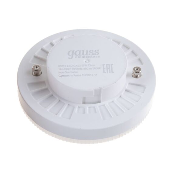 Лампа светодиодная Gauss Elementary GX53 83813 13Вт GX53 таблетка 220B 3000K св.свечения белый теплый уп/1шт