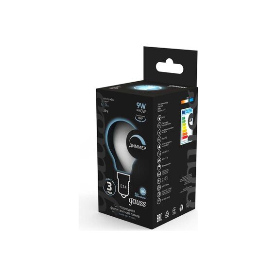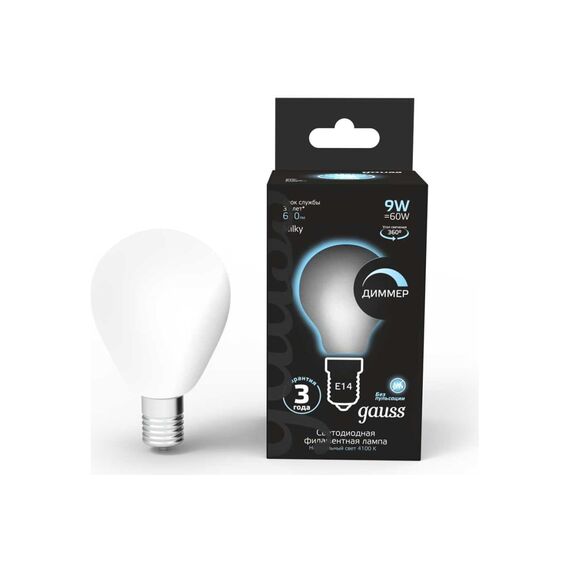 Технические характеристики Gauss Filament шар, 9W, 610lm, 4100К, Е14, milky, LED 105201209-D