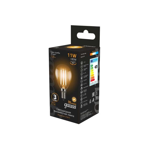 Технические характеристики Gauss LED Filament Шар E14 11W 720lm 2700K 105801111