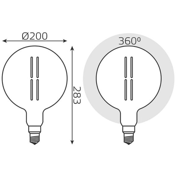 Технические характеристики Gauss LED Vintage Filament Straight G200 6W E27 200x283мм Gray 330lm 4000K 1/6 154802205