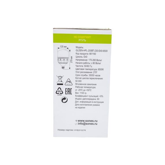 Технические характеристики General Lighting Systems GLDEN-HPL-200ВТ-230-E40-6500 661160