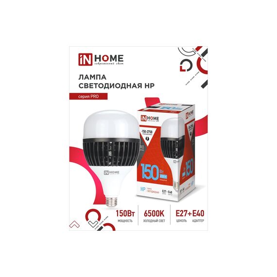 Лампа светодиодная IN HOME LED-HP-PRO (4690612035703) 150Вт E27 с адаптером Е40 6500К
